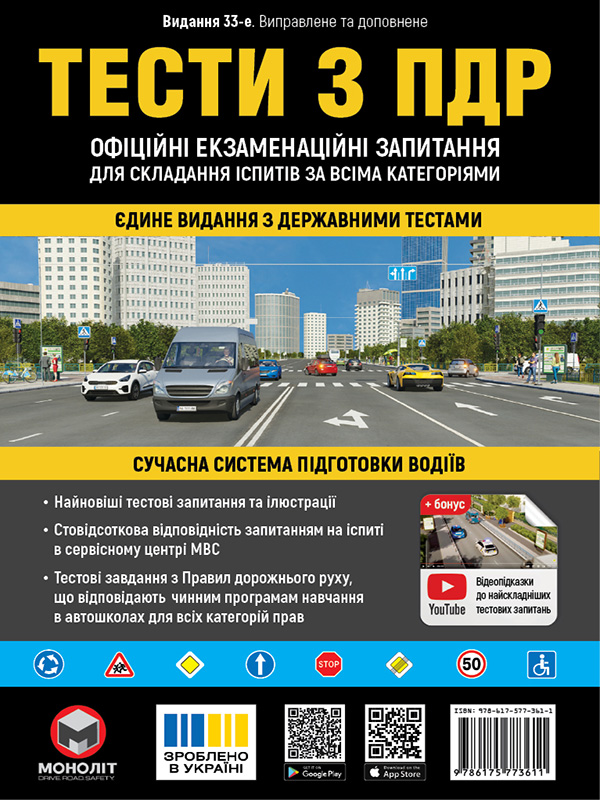 Тести за правилами дорожнього руху України (33-е видання перероблене і доповнене)