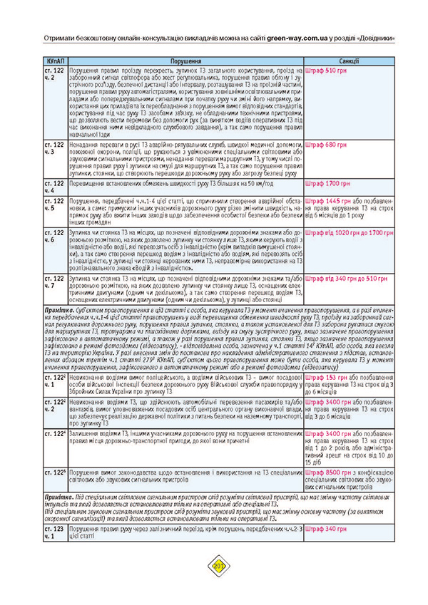 • Штрафи та інші санкції для водіїв і пішоходів (КУпАП)